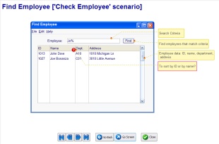 The idea behind MockupScreens is simple, and so is the work you do with MockupScreens' help. Just draw the main screens of your application, organize them in "scenarios" (or use-cases, storyboards... you name it), and walk through scenarios with real users BEFORE the programming has started.