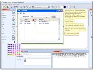 | Populate screens with real-looking data Requirements professionals of course already know this: to gather quality feedback you have to populate screen elements with real-looking data. Mockup Screens is built to make this easy for you! Click Image to Enlarge | Document what is important Each element including the screen itself can be documented. You can even add colored icons to point to the questions or issues remaining. Use these two features to clarify software requirements and user interface specifications and improve on customer feedback. For smaller projects that might even be all you'll ever need! Click Image to Enlarge | |